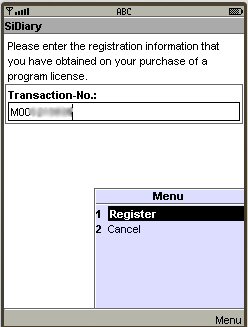 Enter your transaction number (starting with the letter 'M') and press on 'Menu ->Register' to finish the registration: