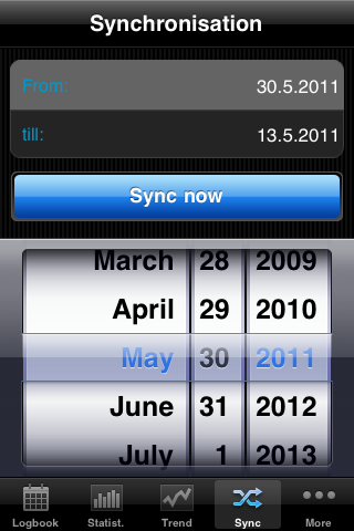 The setting is done and now you can start the alignment by clicking the sync button in the navigation bar. Just select your desired time range and click at the button 'Sync now'.