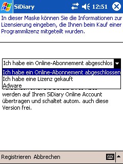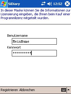 SiDiary Pocket PC mit Abo-Lizenznummer freischalten