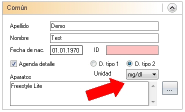 Por supuesto, ¡SiDiary apoya tu trabajo diario al proporcionar estas dos principales unidades para la glucosa en sangre! Puedes seleccionar alguna en el Menú 'Perfil de diabetes -> Detalles de terapia y metas -> General':