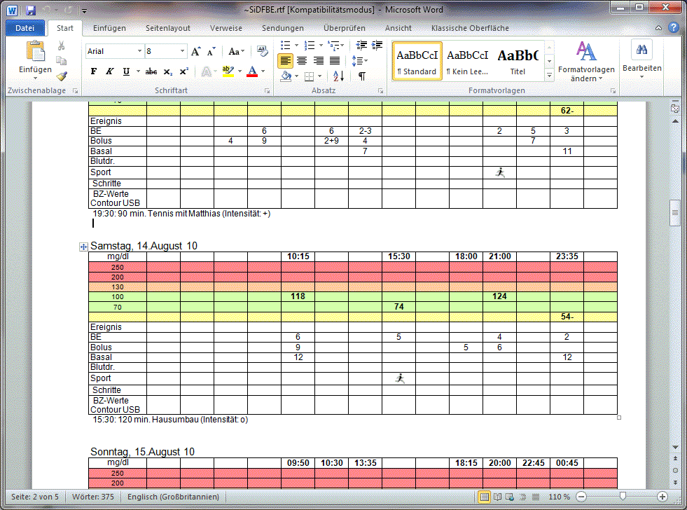 (Multi-Language-support!) Druckt alle Werte aus wie mit dem ursprünglichen Standard-Template für SiDiary. Print-out for all tracked values according to the standard print template which comes initially with SiDiary. |